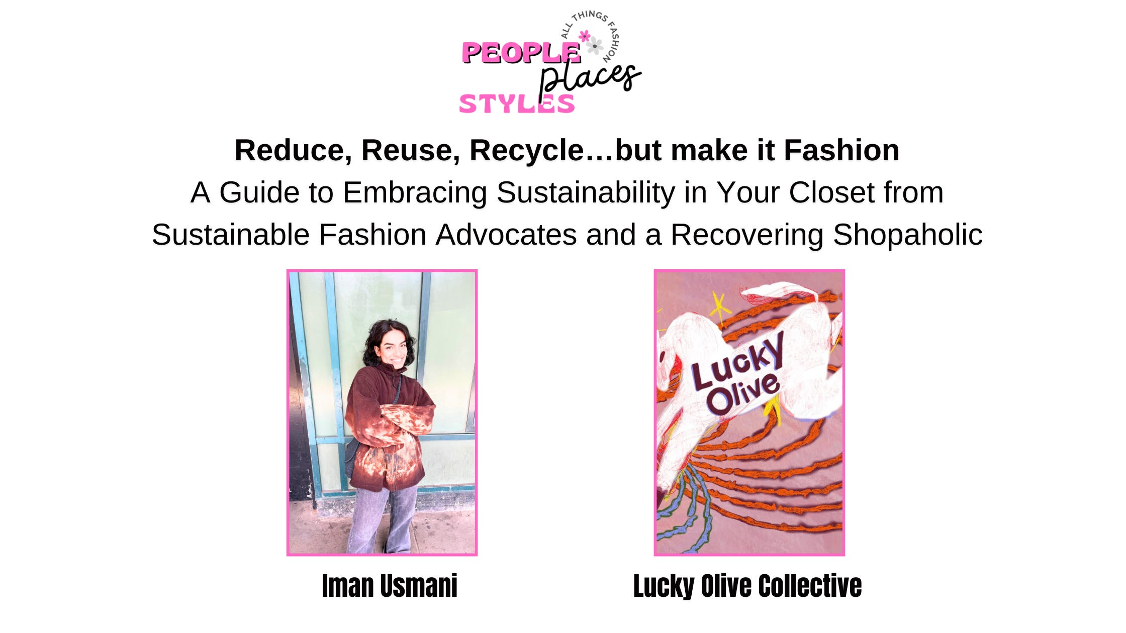 These early lessons in sustainability laid the foundation for Iman's passion for sustainability and becoming an advocate for ethical fashion. Her interests have most recently led her to co-founding the Lucky Olive collective, whose mission is to build a community for conscious living. Lucky Olive originated from her colleague seeing a lack of events focused on slow fashion, resources, and community during Climate week.